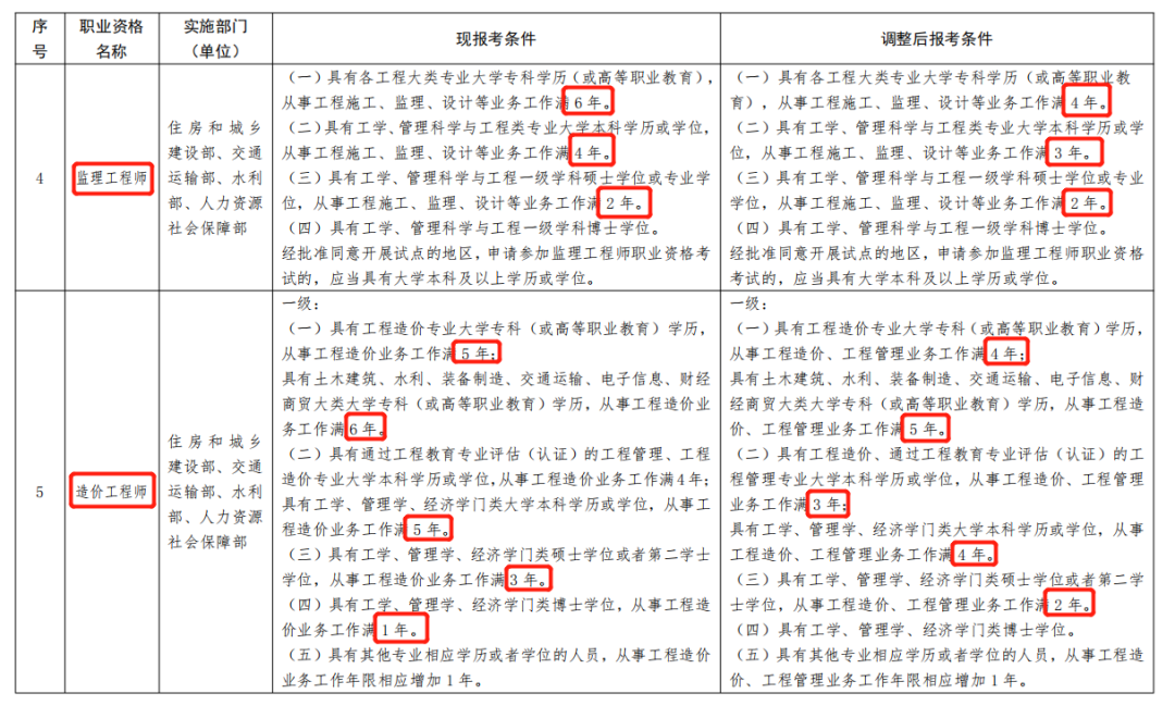 一、《部分準入類職業資格考試工作年限要求調整方案》(見附件)自2022年起實施。除調整考試工作年限要求外,13項準入類職業資格的其他考試報名條件不變。
