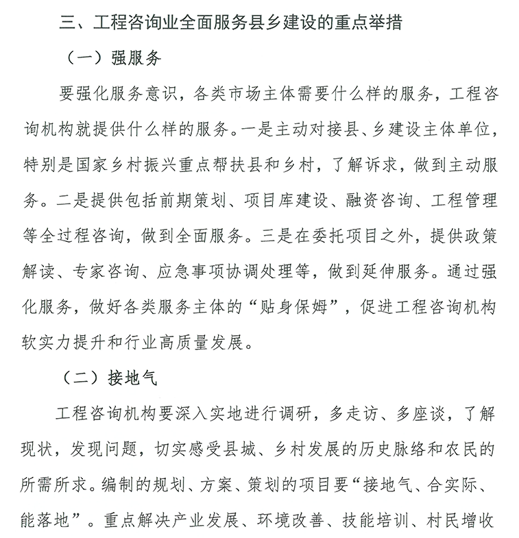 縣城城鎮(zhèn)化建設、鄉(xiāng)村建設是一項宏大的社會工程,需要整體的、長遠的規(guī)劃。特別是城鄉(xiāng)“二元”化結構較為明顯,大部分鄉(xiāng)鎮(zhèn)和村莊發(fā)展規(guī)劃欠缺,村落布局散亂,公共服務供給不足,嚴重制約了縣城、鄉(xiāng)村發(fā)展。規(guī)劃咨詢,注重規(guī)劃先行,因地制宜,可運用工程技術、科學技術、經(jīng)濟管理和法律法規(guī)等多學科的知識與經(jīng)驗,為縣城建設項目決策提供智力服務,解決縣城發(fā)展與定位問題,避免錯亂發(fā)展,無效競爭。