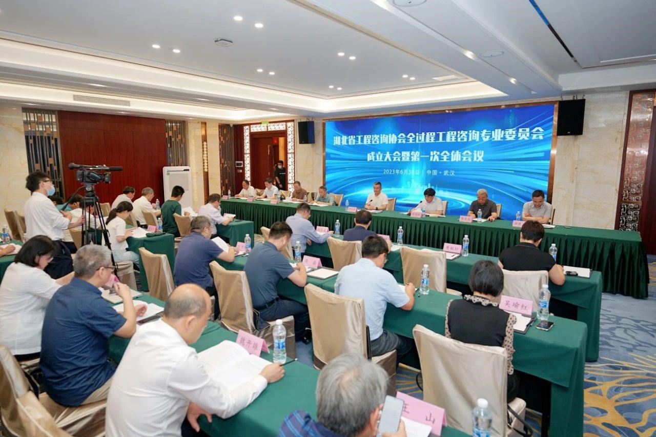 2023年6月30日上午,湖北省工程咨詢協(xié)會全過程工程咨詢專業(yè)委員會成立大會暨第一次全體會議在武漢召開。協(xié)會會長、副會長、副會長單位代表及全過程工程咨詢專委會全體委員等共60多人出席會議。