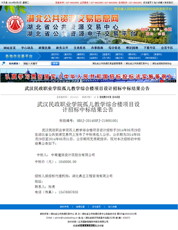 武漢民政職業(yè)學院孤兒教學綜合樓項目設計招標