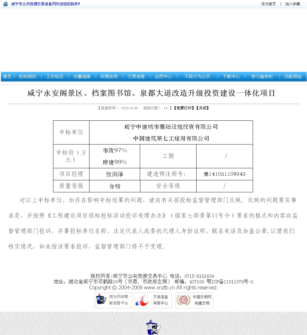 咸寧永安閣景區、檔案圖書館、泉都大道改造升級投資建設一體化項目