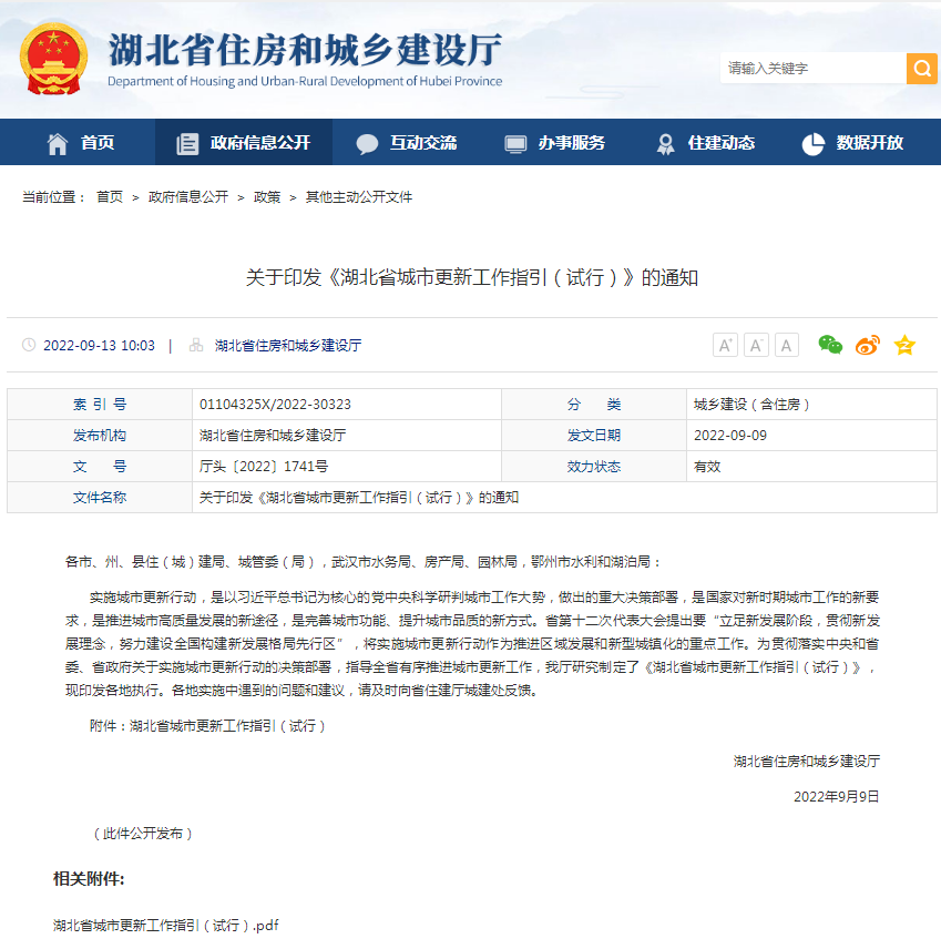湖北省住建廳印發《湖北省城市更新工作指引(試行)》