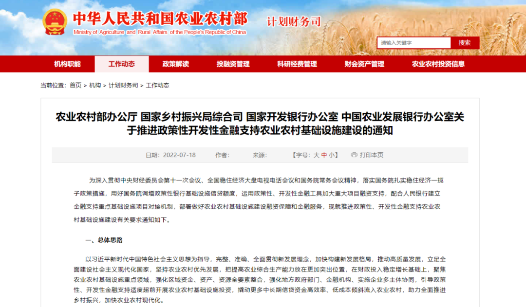 關(guān)于推進政策性開發(fā)性金融支持農(nóng)業(yè)農(nóng)村基礎設施建設的通知