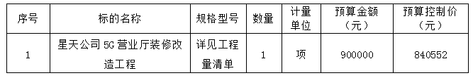 星天公司5G營業(yè)廳裝修改造工程磋商邀請