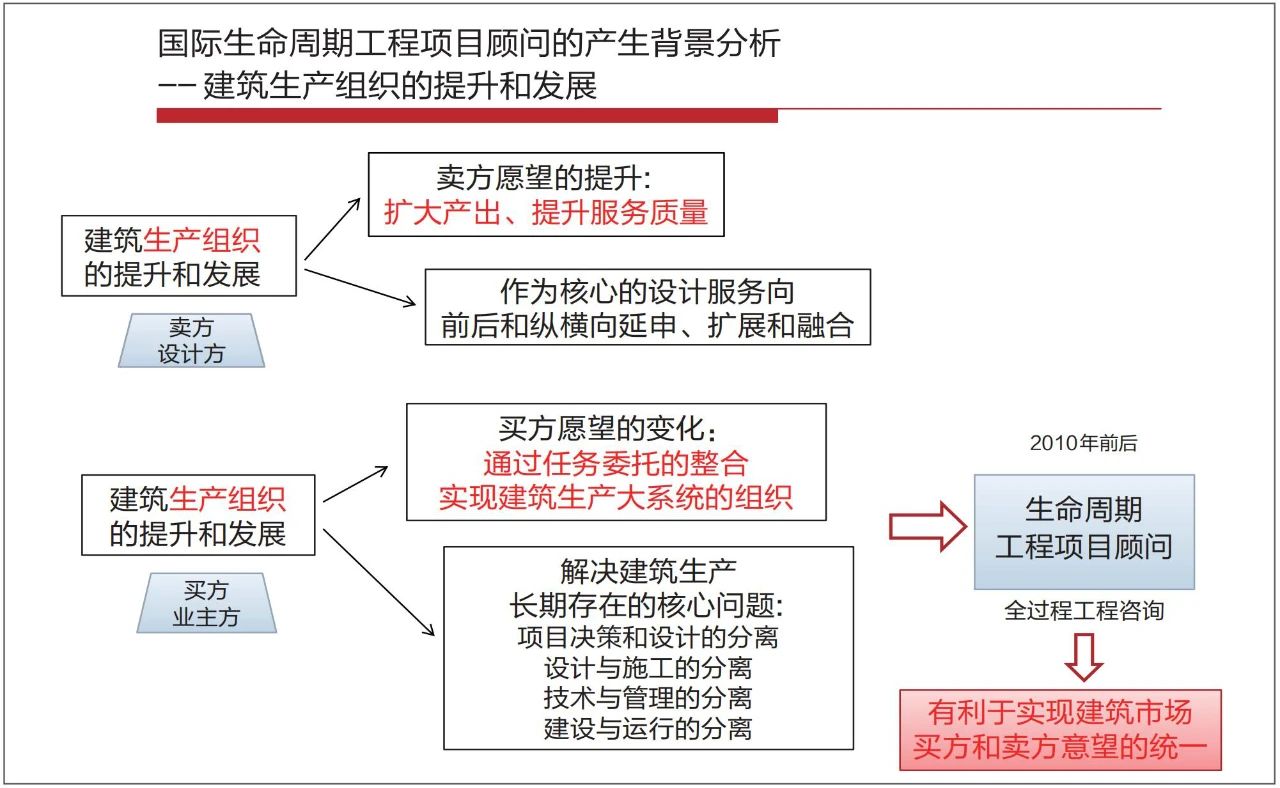 通過以上分析可以看出,國際生命周期工程項(xiàng)目顧問是因建筑市場上買方和賣方雙方的積極性而產(chǎn)生的,為建筑生產(chǎn)的組織形成一種新的模式。另外,關(guān)于國際生命周期工程項(xiàng)目顧問的特征和發(fā)展趨勢分析,也是可以供我國建筑業(yè)企業(yè)參考的。