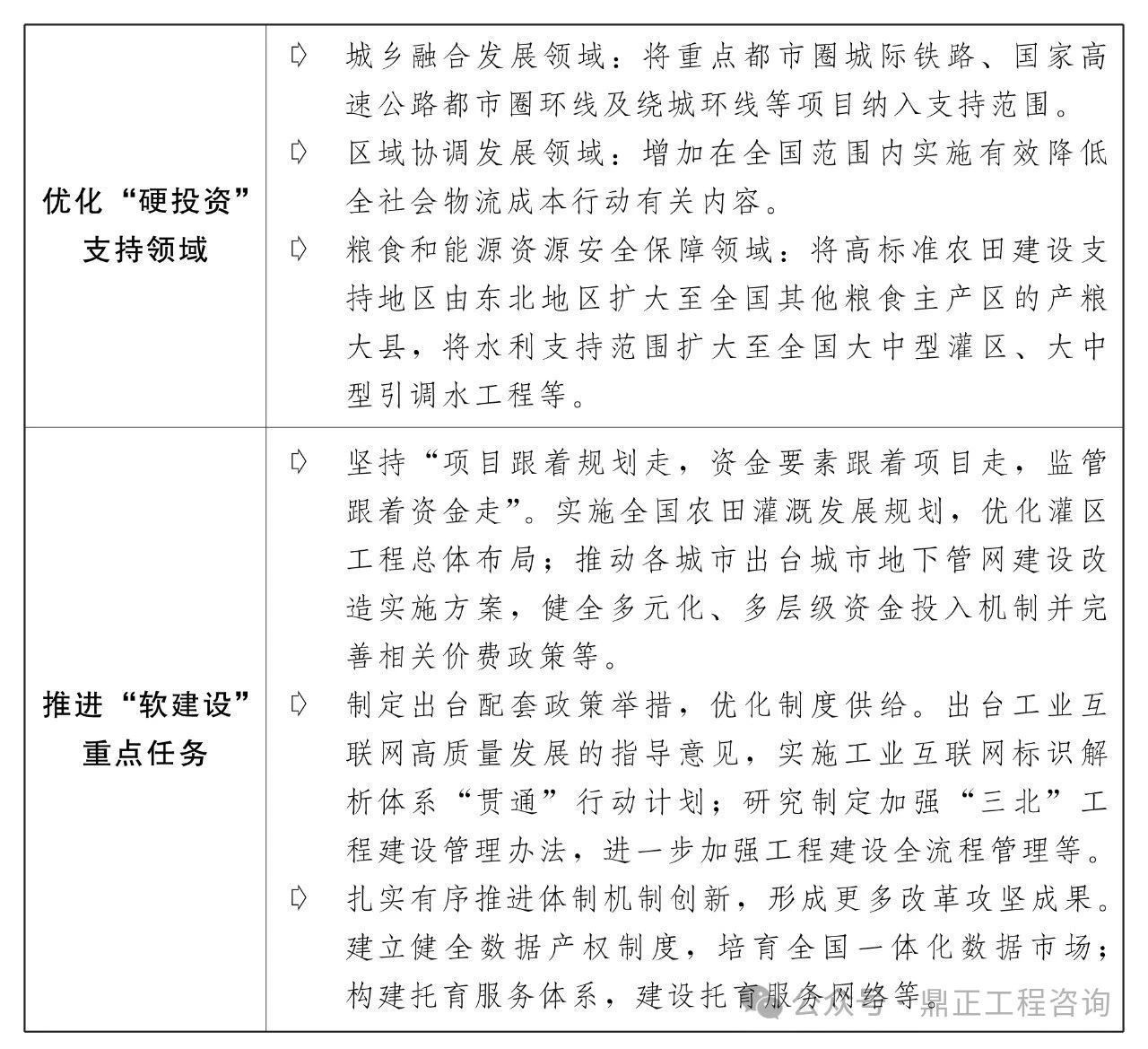 安排超長期特別國債8000億元支持 “兩重”建設,進一步優化具體投向并提高項目支持比例,重點支持基礎研究能力提升、未來產業發展、東北等重點地區高標準農田建設、大中型灌區新建改造及大中型引調水和大中型水庫建設、長江經濟帶生態環境保護和綠色發展、農業轉移人口市民化公共服務體系建設、高等教育提質升級、城市地下管網管廊建設改造等方面任務,強化超長期貸款等配套融資,高質量推進 “硬投資”項目謀劃實施。加大力度推動 “軟建設”政策落地見效。