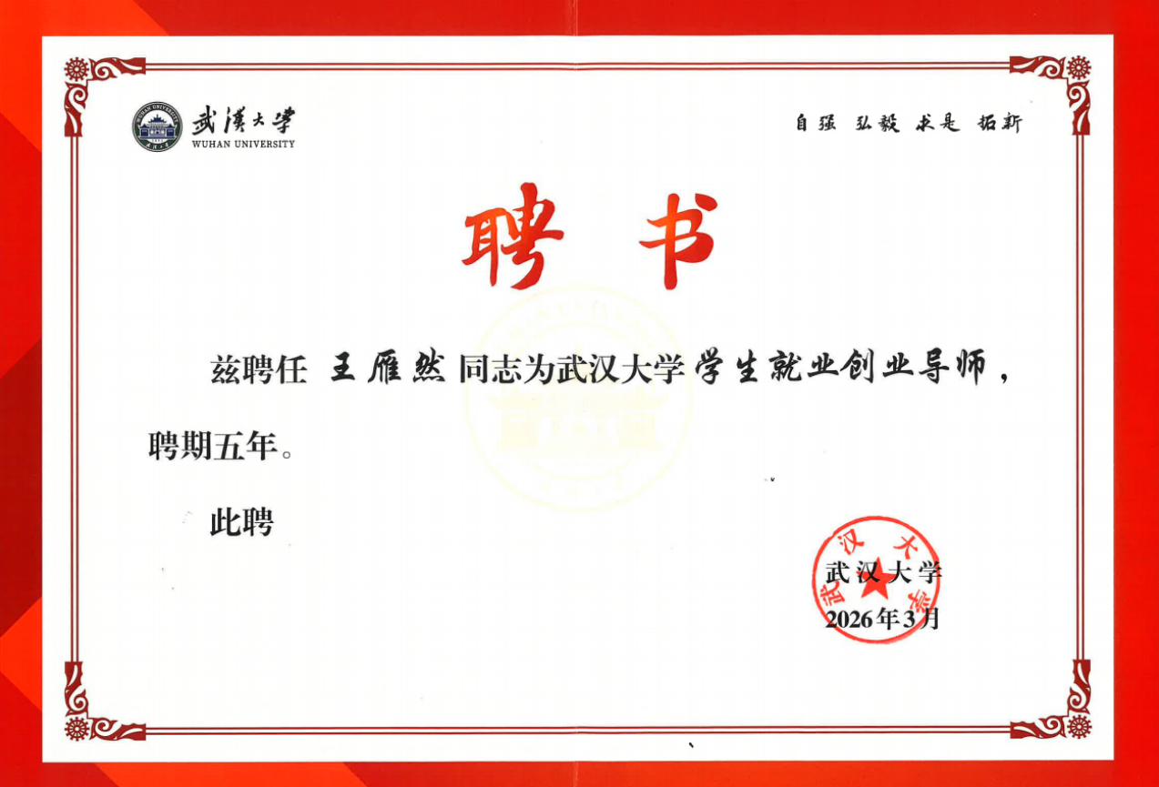 ▲王雁然董事長受聘為武漢大學學生就業創業導師