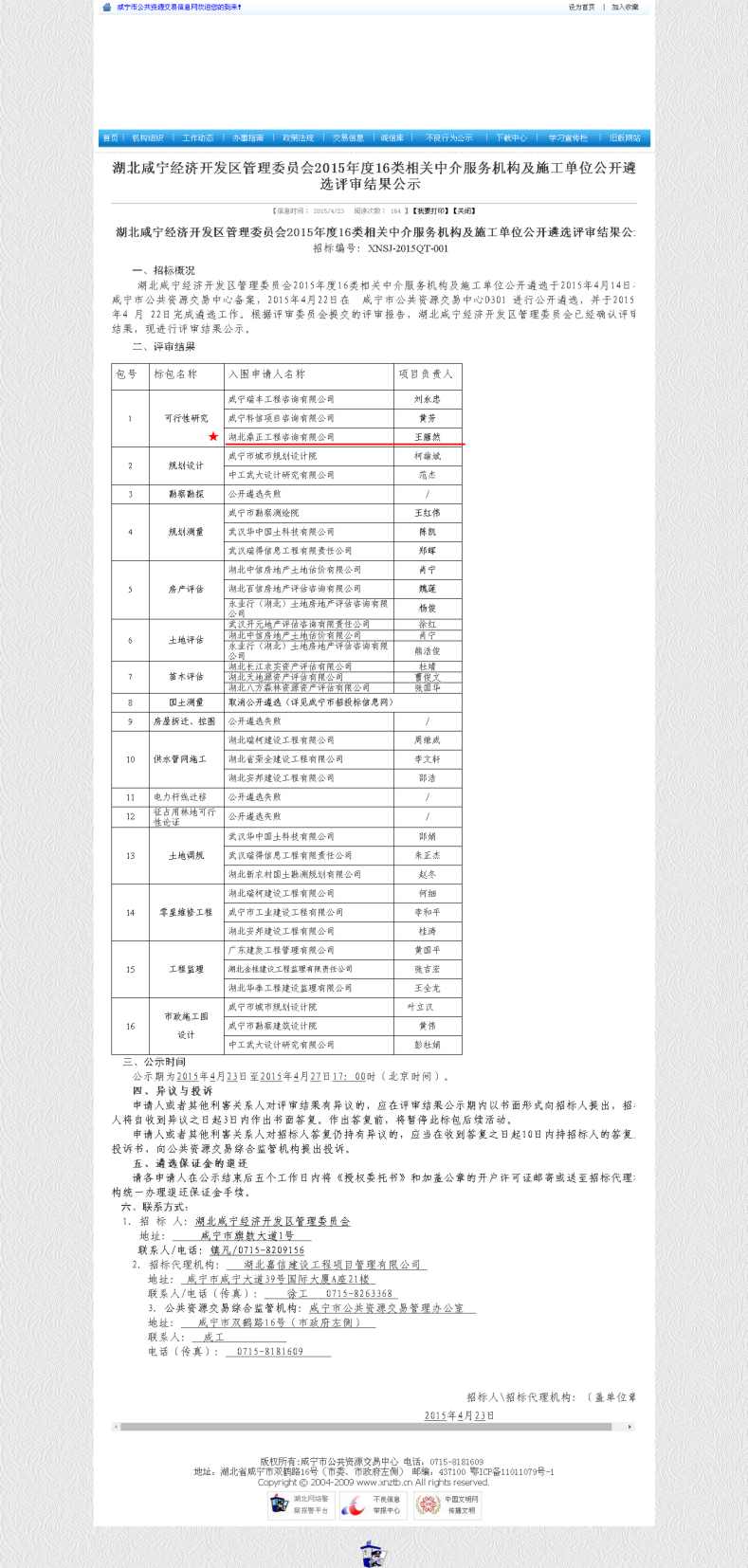 【經(jīng)營成果】我司入圍湖北咸寧經(jīng)濟開發(fā)區(qū)管理委員會2015年度16類相關(guān)中介服務(wù)機構(gòu)的可行性研究單位