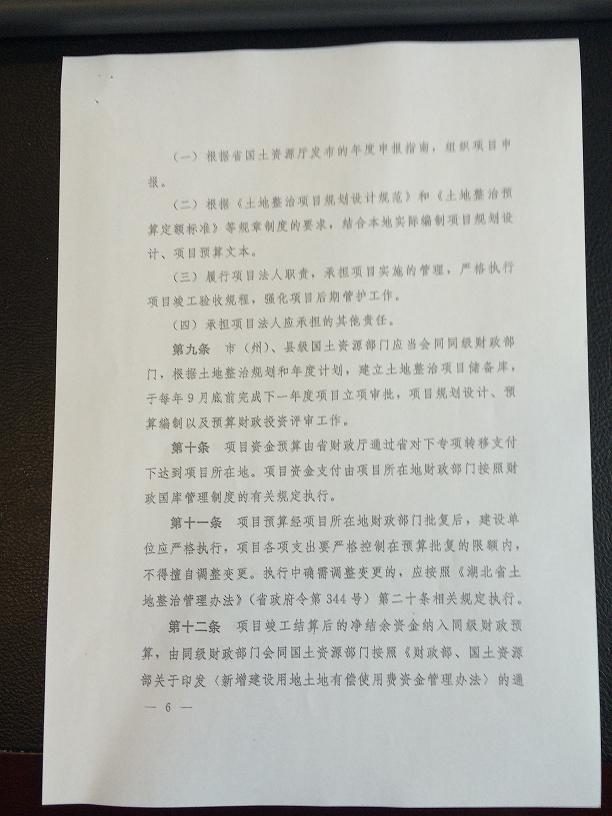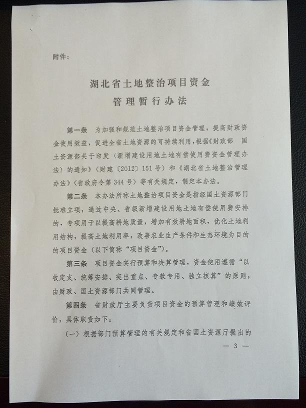 湖北省土地整治項目資金管理暫行辦法