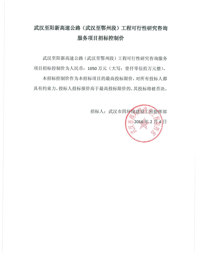 武漢至陽新高速公路(武漢至鄂州段)工程可行性研究咨詢服務(wù)項(xiàng)目招標(biāo)控制價