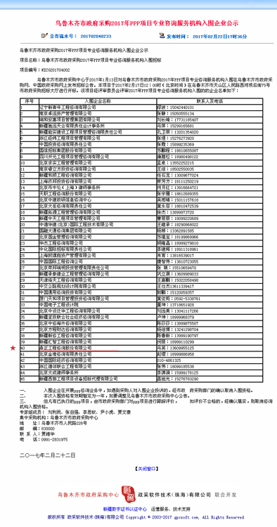 【經(jīng)營(yíng)成果】我司成功入圍烏魯木齊市政府采購2017年P(guān)PP項(xiàng)目專業(yè)咨詢服務(wù)機(jī)構(gòu)庫